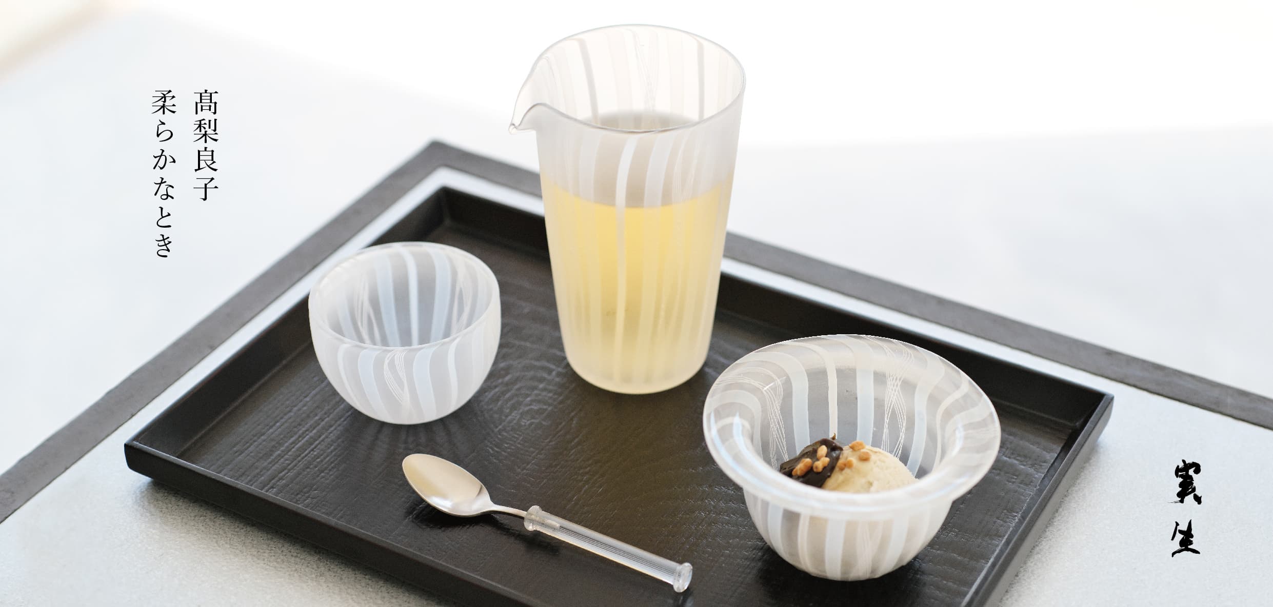 会期中の24日,25日は当イベント用に制作した作品で、季節のお茶とお菓子を楽しみながら、吹き硝子のことをお話しさせていただきました。